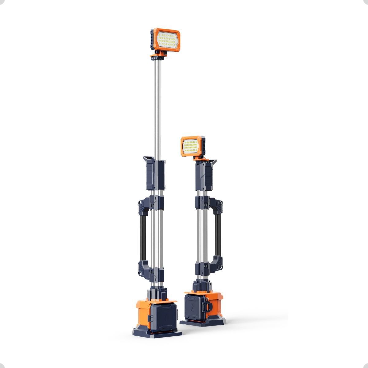 A Torre de Iluminação Portátil é projetada para oferecer iluminação de alta performance em ambientes desafiadores. Com um design leve e compacto, ela é fácil de transportar e configurar, podendo ser operada por uma única pessoa. Ela oferece até 4.000 lumens de iluminação em quatro modos ajustáveis, garantindo luz adequada para diferentes necessidades, desde reparos em estradas até atividades ao ar livre.